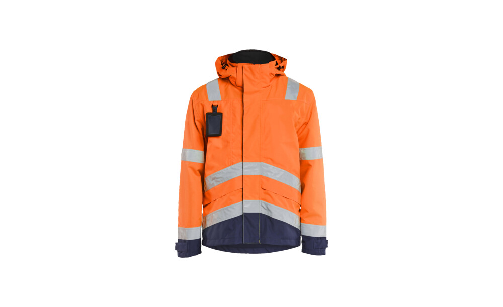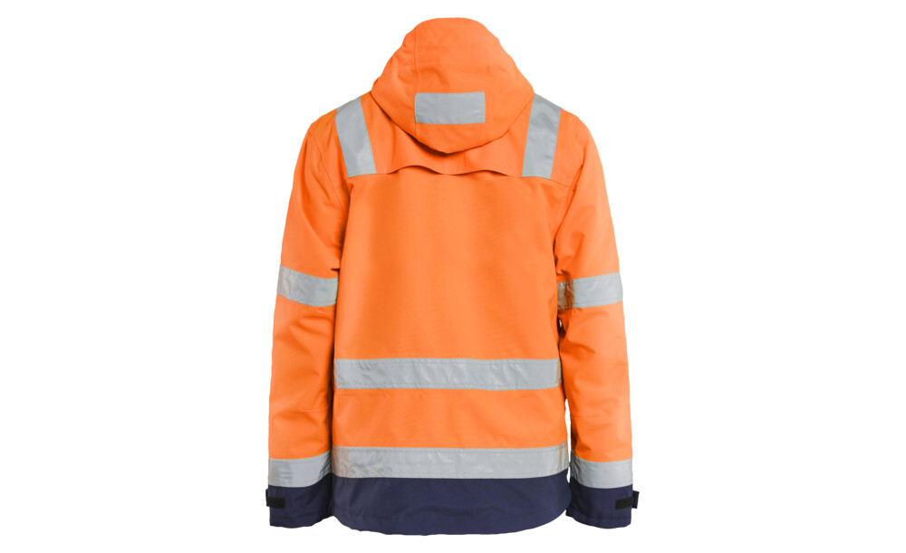 Eine leichte, wind- und wasserdichte Funktionsjacke mit verklebten Nähten. Mesh-gefüttert mit Kordelzug an der Taille und im unteren Teil der Jacke. Die Jacke hat einen hohen Kragen mit durchgehendem Reißverschluss für einen bequemen Schutz. Zertifiziert nach EN ISO 20471, XXS-XS Klasse 2, S-XXL Klasse 3, Schutzkleidung mit hoher Sichtbarkeit und EN 343 - Schutzkleidung bei schlechtem Wetter.