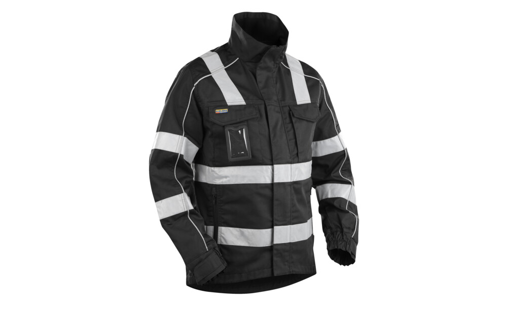 Zwei Vordertaschen mit Reißverschluss, Patte und Klettverschluss. Einstellbare Ärmelbündchen mit Klettverschluss. Zwei Balgtaschen mit Patte, eine mit ID-Tasche und Schlüsselring, die andere mit Napoleontasche. Ärmeltasche mit Stiftfach. Vorgeformte Ärmel. Zwei Innentasche, eine mit Reißverschluss, die andere mit Klettverschluss. Justierbare Taille. 50 mm breite Reflexstreifen. Fluoreszierende Farbkombination 3399, zertifiziert nach EN 471 Klasse 2.