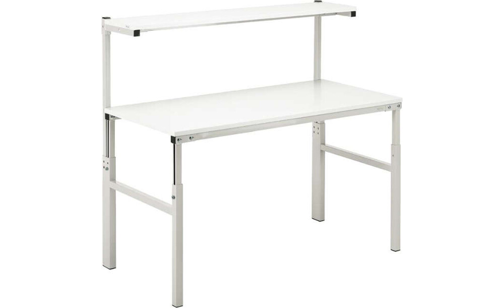 -Arbeitsplatzsystem Grundeinheit TPH Diese Arbeitstische eignen sich als Basiswerkbänke für den Einsatz in Produktions- und Montageumgebungen. Die Höhe der Arbeitstische kann stufenlos von 650 bis 900 mm eingestellt werden. Daher sind diese Arbeitsplätze für sitzende oder stehende Tätigkeiten geeignet.