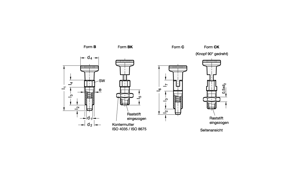 - Form: CK - mit Rastsperre, mit Kontermutter