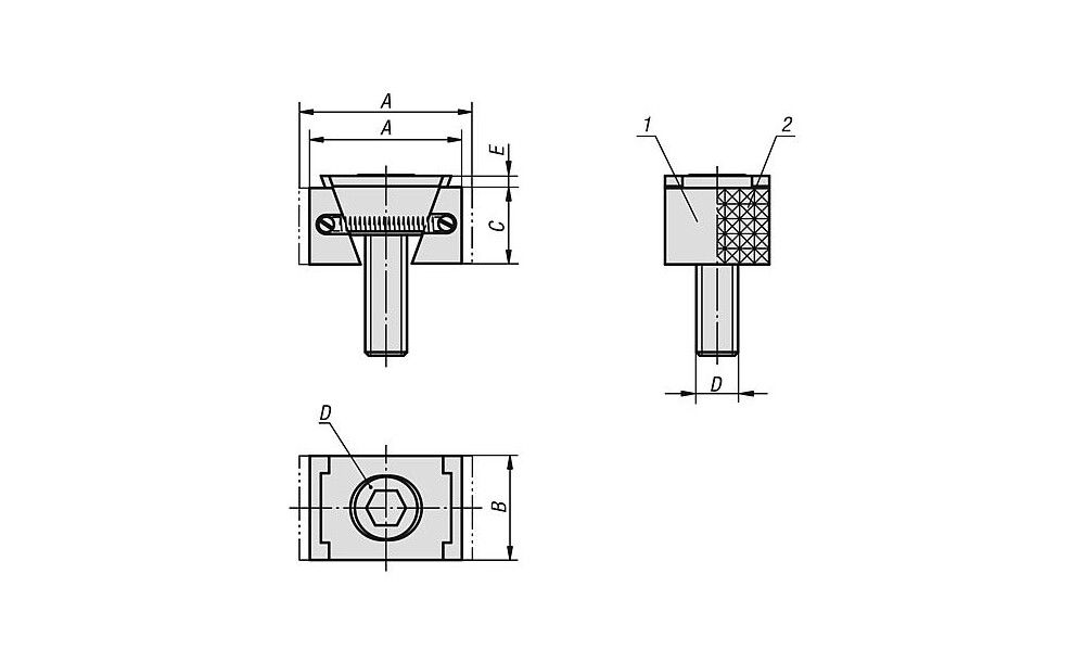 Wahlweise können die Keilspanner in einer Gewindebohrung oder einer T-Nut zum Spannen eingesetzt werden. Durch Eindrehen der Spannschraube bewegen sich die beiden Spannsegmente nach außen und drücken die Werkstücke gegen die festen Anschlagbacken der Bearbeitungsvorrichtung.