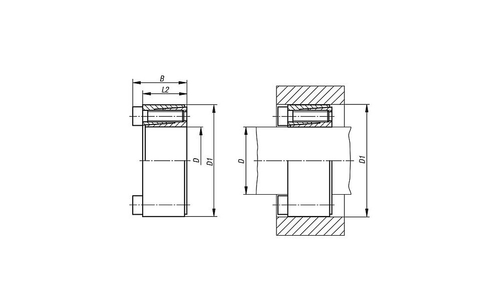 Werkstoff: Stahl. Ausführung: blank. Bestellbeispiel: nlm 23354-0516 Hinweis: Für Anwendungen die ein geringes Bauvolumen und geringe Flächenpressung benötigen. Der Spannsatz kann in einer Nabenverbindung vollständig versenkt werden. - für Wellendurchmesser von 5 bis 50 mm - für mittlere Drehmomente - für Naben mit geringer Wandstärke geeignet - geringfügige axiale Verschiebung möglich - selbstzentrierend Montage: Spannsatz an den Konusflächen sowie Kontaktstellen von Welle und Nabe leicht ölen. Kein MoS2 oder Fett verwenden. Spannsatz in den Nabensitz einfügen und auf die Welle schieben. Schrauben über Kreuz in mehreren Stufen auf angegebenes Anziehdrehmoment anziehen. Demontage: Alle Schrauben entfernen und in die Abdrückgewinde des vorderen Flansches eindrehen. Schrauben über Kreuz in mehreren Stufen anziehen bis sich der Spannsatz löst. Toleranzen: Welle: Empfohlen wird die Toleranz h8. Oberflächenbeschaffenheit Rz = 16 µm. Nabe: Empfohlen wird die Toleranz H8. Oberflächenbeschaffenheit Rz = 16 µm.