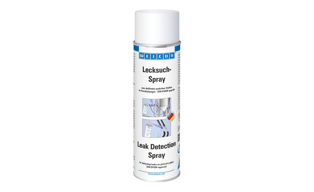 WEICON Lecksuch-Spray dient dem schnellen, bequemen und verlässlichen Auffinden von Undichtigkeiten (Rissen oder porösen Stellen) an Druckleitungen.