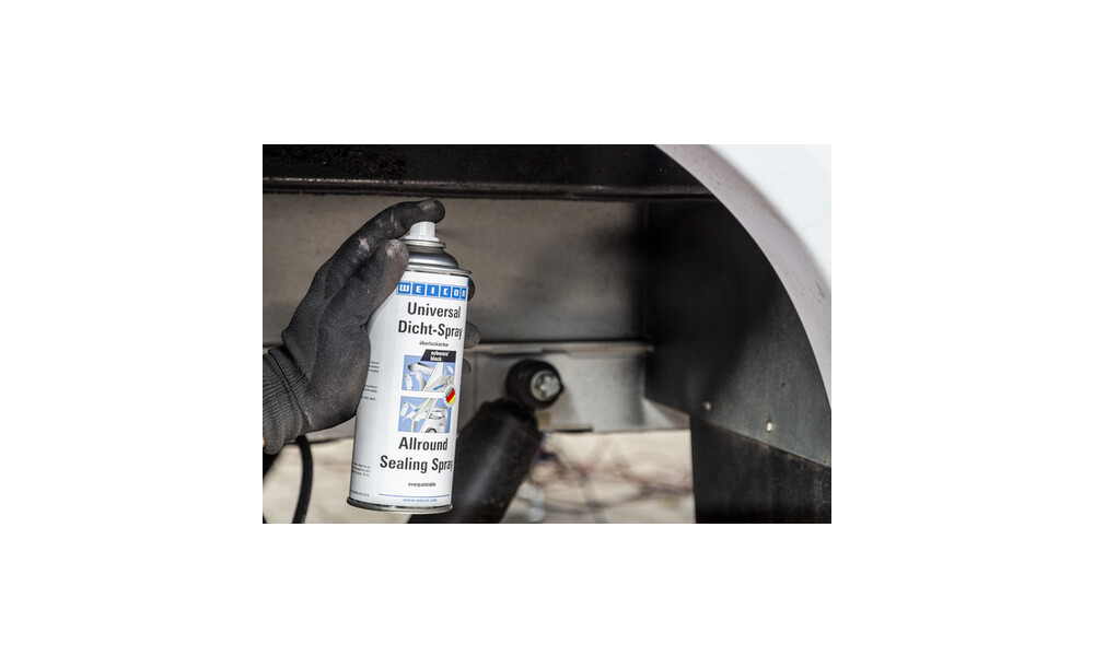 WEICON Universal Dicht-Spray ist ein haftstarker, sprühbarer Kunststoff zur Abdichtung von Undichtigkeiten. Es wurde speziell für das Abdichten feinster Risse und Nähte im Innen- und Außenbereich entwickelt. Es kann zum einfachen Abdichten in den verschiedensten Anwendungen verwendet werden, wie an Dachrinnen, Abwasser- und Abflussrohren, Wohnwagen, -mobilen und Booten, Dächern und Fenstern, Poolwänden und Teichfolien, Kellerschächten und an Lüftungsschächten. Universal Dicht-Spray haftet auf vielen Oberflächen, wie zum Beispiel Stein, Metall, Kunststoff, Holz, Emaille, uvm. Das Spray ist überlackierbar, wasserfest und witterungsbeständig. Es schützt Metalle vor Korrosion und ist frei von Bitumen und Silikon.