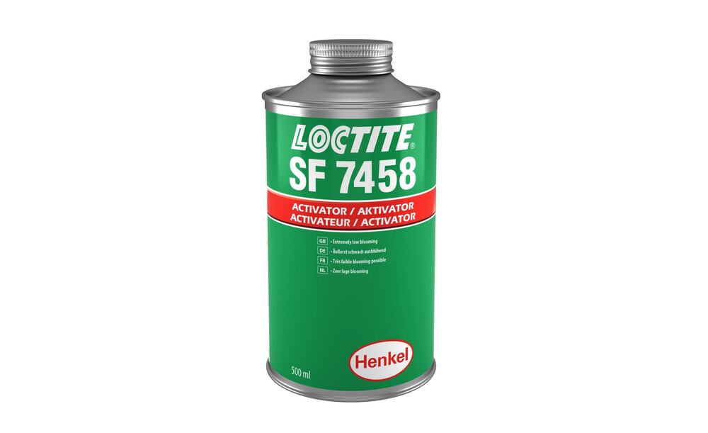 LOCTITE SF 7458 ist ein farbloser, aminfreier, lösungsmittelbasierter flüssiger Aktivator, der die Aushärtegeschwindigkeit von LOCTITE Cyanacrylatklebstoffen erhöht und vor oder nach dem Klebevorgang aufgetragen werden kann. Bei Vorbehandlung kann das Produkt über Fluoreszenz nachgewiesen werden. Die Aktivierung bleibt auf den behandelten Flächen über einen langen Zeitraum erhalten; das Produkt ist für die Nachbehandlung von Cyanacrylatklebstoffen geeignet. Das Produkt eignet sich speziell für Anwendungen, bei welchen neben den Anforderungen an die Aushärtegeschwindigkeit besonders das optische Erscheinungsbild der Klebestelle von herausragender Bedeutung ist.