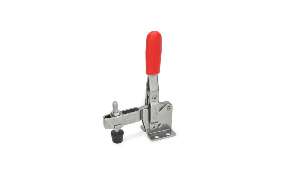 Schnellspanner, Edelstahl, Spannhebel vertikal, mit waagrechtem Fuß