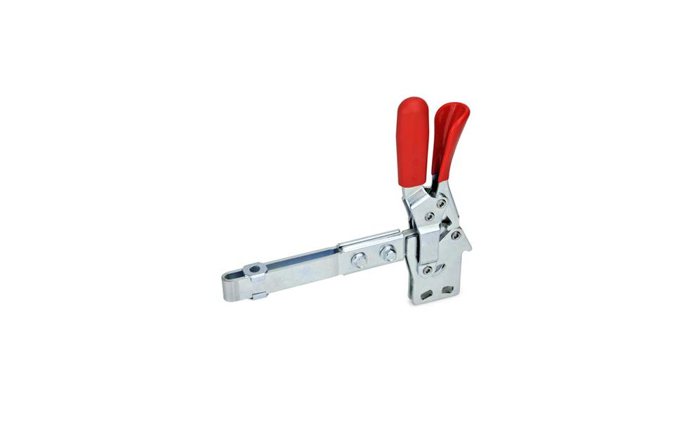 Schnellspanner, Stahl, Spannhebel vertikal, mit Verriegelung, mit senkrechtem Fuß, mit verlängertem Spannarm