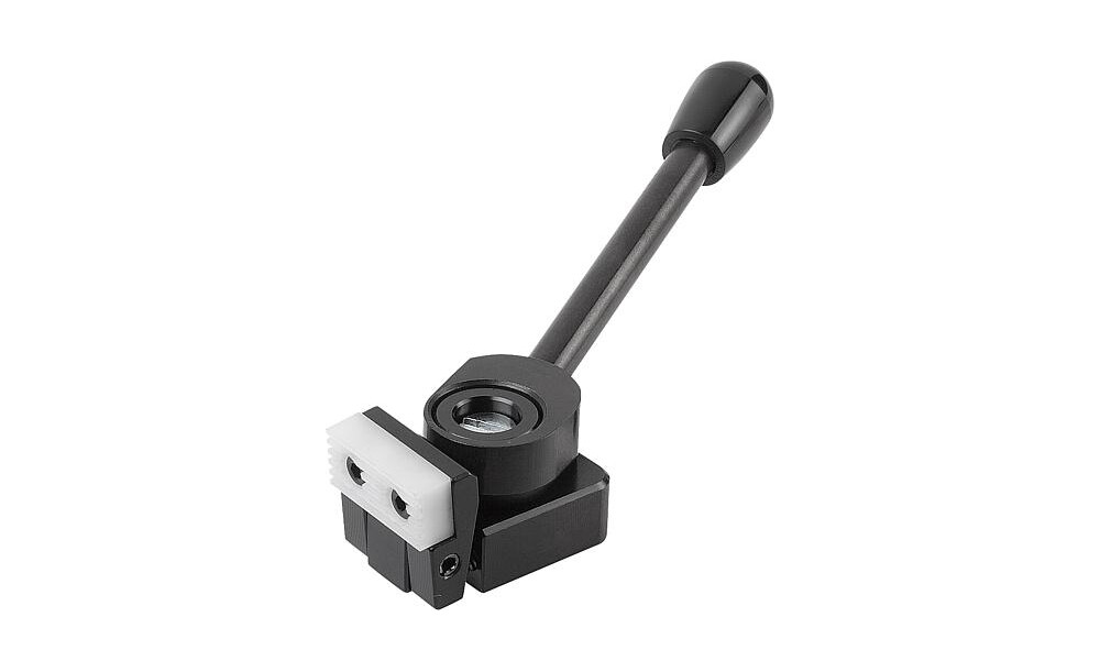 Der Niederzugspanner ist ein Schnellspannelement, mit dem Werkstücke durch den Schwenkbacken über den Spiralexzenter gleichzeitig an die Festanschläge und auf eine Auflage gedrückt werden.