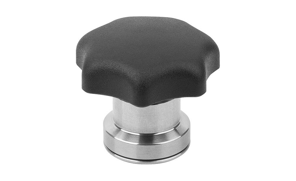 STERNGRIFF MIT SPANNKRAFTVERSTÄRKER D=M12, D1=63, H=47, FORM:K, THERMOPLAST SCHWARZ, KOMP:EDELSTAHL