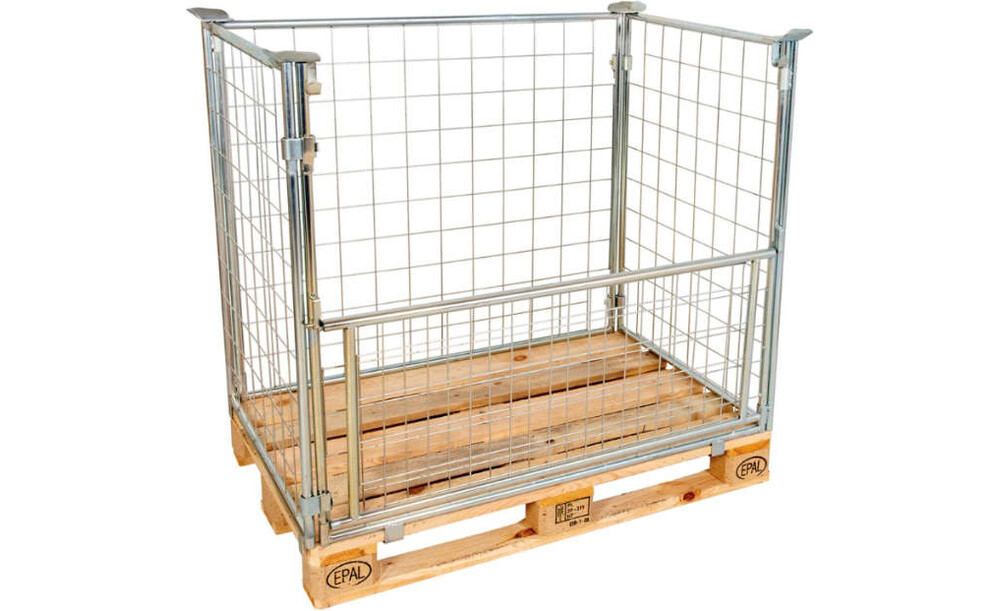 -Gitteraufsatzrahmen Dieser Gitteraufsatzrahmen hat eine Klappe an der Längsseite und ist 3-fach stapelbar.