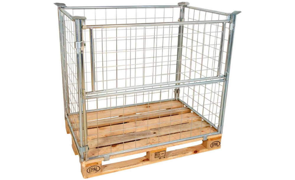 -Gitteraufsatzrahmen Dieser Gitteraufsatzrahmen hat eine Klappe an der Längsseite und ist 3-fach stapelbar.
