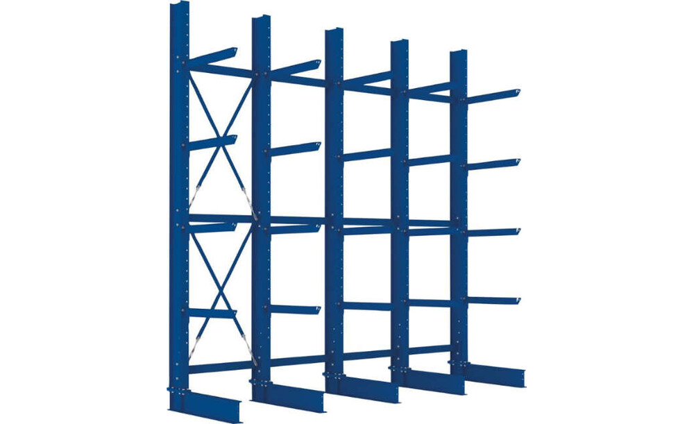 Kragarmregal META REGALBAU, Heavy B4100xT800xH4000 mm einseitig RAL 5010 5 Ebenen Traglast 3150kg