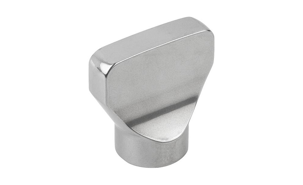 Die Oberfläche ist komplett auf Hochglanz poliert und weist eine Rauhtiefe Ra 0,8 µm auf. Die Kontur ist mit großzügigen Radien, Übergängen und Rundungen hergestellt. Egal in welcher Einbaulage die Flügelmutter eingebaut wird, können Schmutz und Reste vom Produkt bzw. Reiniger kaum anhaften. Eine leichte Reinigung ist daher sichergestellt.