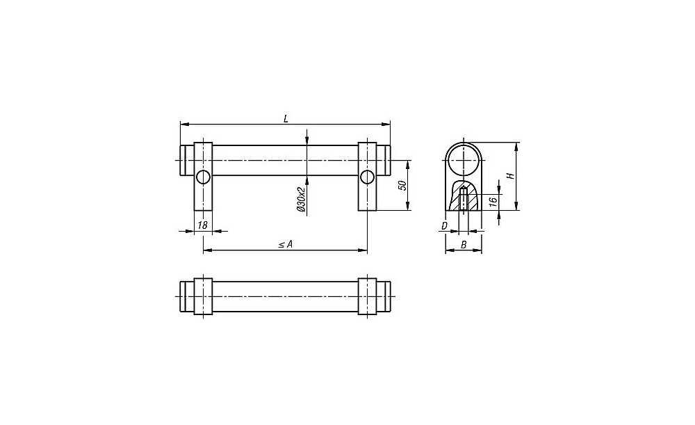 Der Achsabstand kann bei den Rohrgriffen frei festgelegt werden.