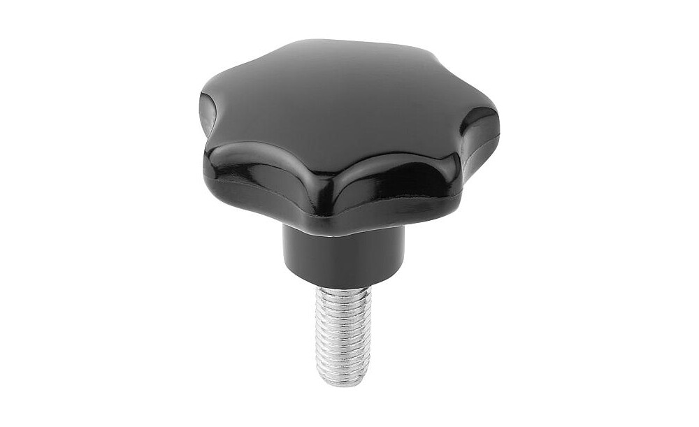 STERNGRIFF ÄHNLICH DIN6336 M06X20, D1=32H=20, FORM:L, DUROPLAST SCHWARZ HOCHGLANZPOLIERT, KOMP:STAHL