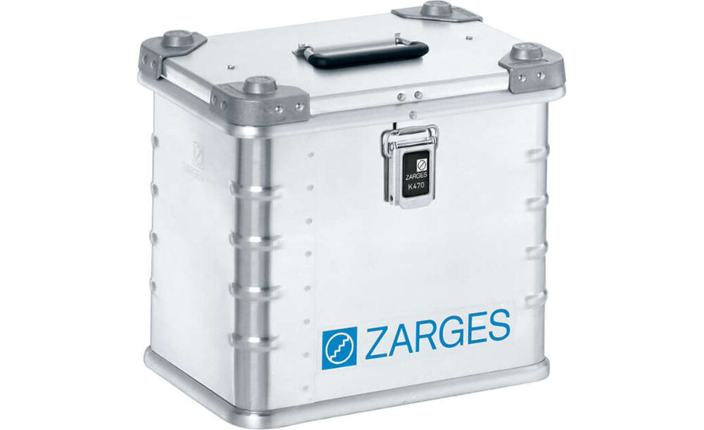 Alu-Kiste ZARGES, K470 27 l IM: ca. B350xT250xH310 mmGriff am Deckel