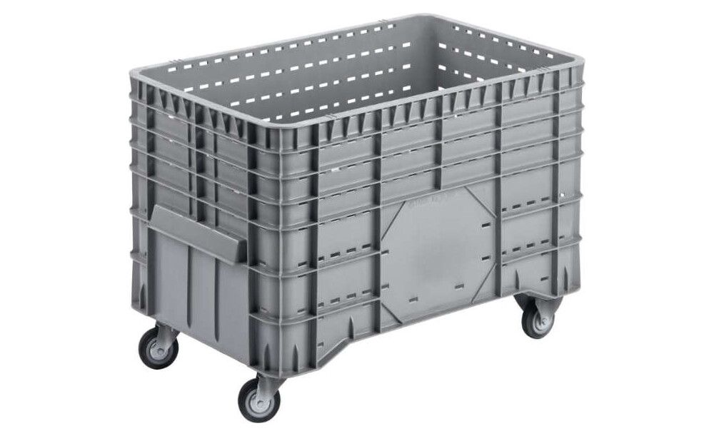 Großbehälter NEUTRALE PRODUKTLINIE, PE fahrbar B1020xT640xH700 mm grau Volumen 300 l Boden/Wände durchbrochen