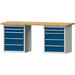 -Kombiwerkbank (Serie V) mit 2 x Schubladenunterschränke stehend, mit 10 Schubladen (4x90, 6x180 mm), lichtgrau/enzianblau Die Kombiwerkbänke der Serie V haben eine Gesamttraglast von 1000 kg mit bodenstehendem Sockelschrank.