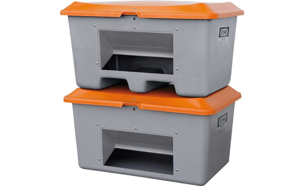 Streugutbehälter CEMO, 400 l B1210xT820xH670 mm ohne Entnahmeöffnung grau/orange