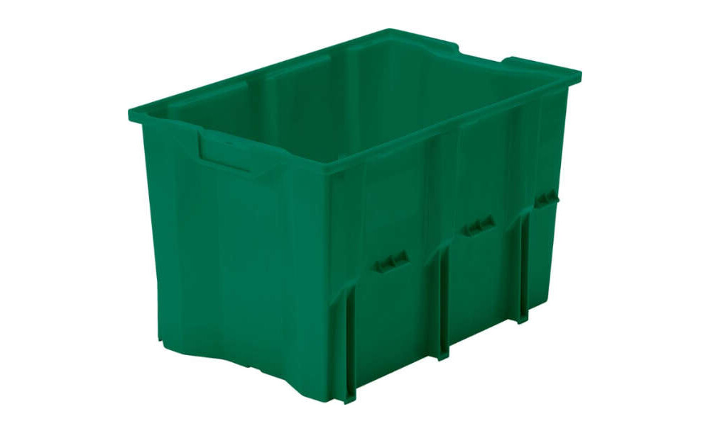 -Drehstapelbehälter Serie DLK, grün Diese Drehstapelbehälter sind aufeinander und nach 180°-Drehung ineinander stapelbar.