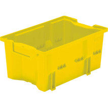 -Drehstapelbehälter Serie DLK, gelb Diese Drehstapelbehälter sind aufeinander und nach 180°-Drehung ineinander stapelbar.