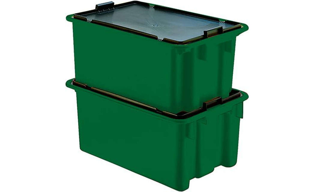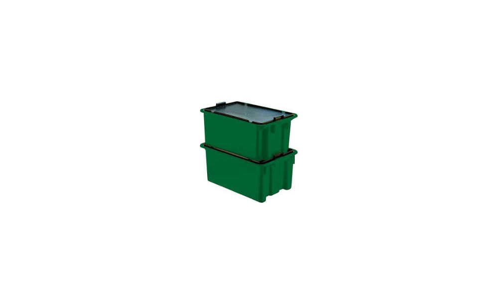 -Drehstapelbehälter, grün Diese Drehstapelbehälter sind aufeinander und nach 180°-Drehung ineinander stapelbar.