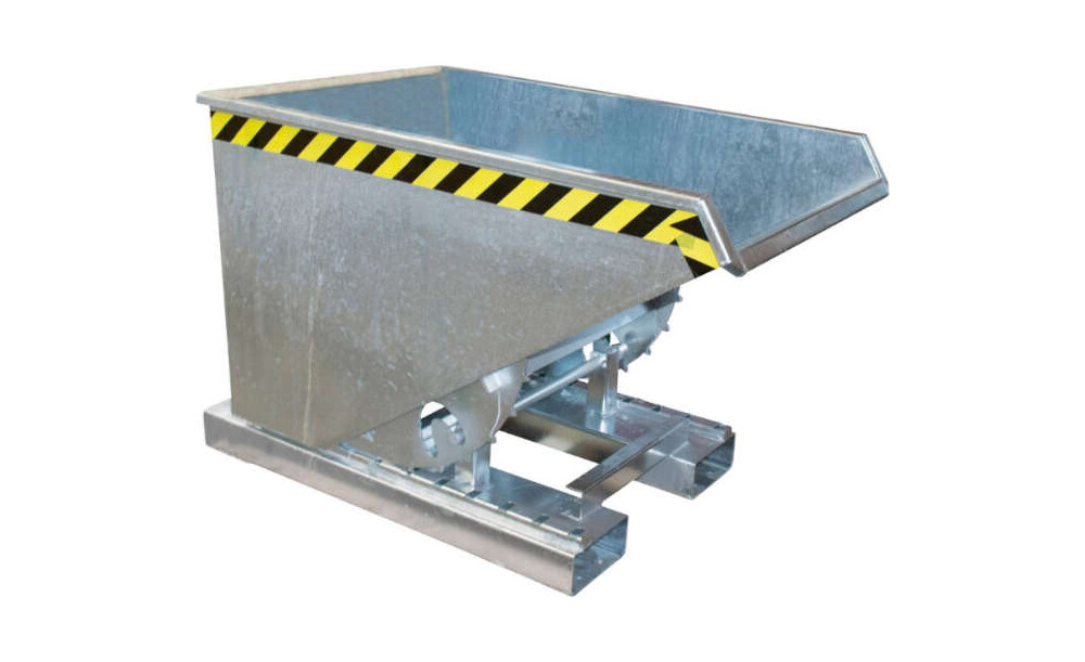 -Kippbehälter, mit Abrollsystem, Typ EXPO®, verzinkt Dieser Kippbehälter hat eine kompakte Bauform mit einem günstigen Lastschwerpunkt.