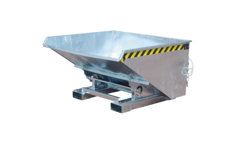 -Kippbehälter, mit Abrollsystem, Typ EXPO®, verzinkt Dieser Kippbehälter hat eine kompakte Bauform mit einem günstigen Lastschwerpunkt.