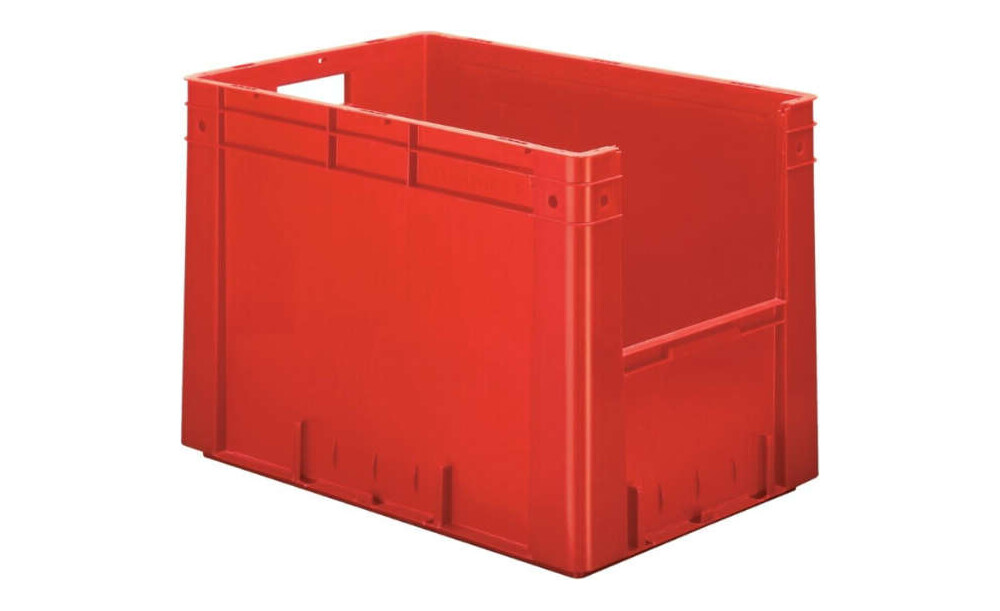 Sichtlagerkasten LA-KA-PE, rot B400xT600xH420 mm Auflast 600kg, VE 2 Stk. mit Griffloch LA-KA-PE
