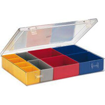 -Sortimentskasten aus Polystyrol mit glasklarem Deckel und losen Einsatzkästen Diese Sortimentskästen sind mit losen Einsatzkästen zur einfachen Entnahme ausgestattet.