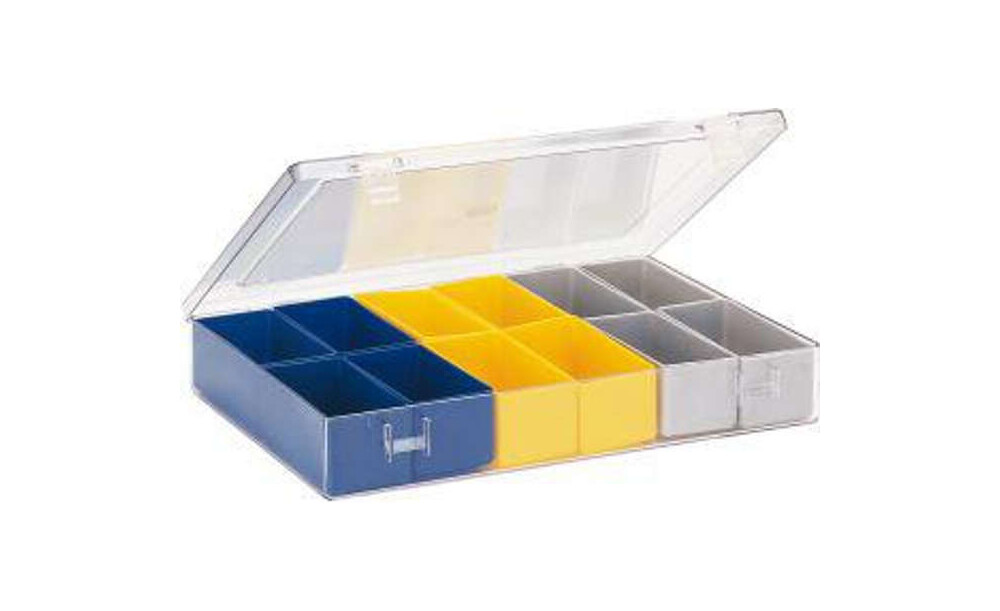 -Sortimentskasten aus Polystyrol mit glasklarem Deckel und losen Einsatzkästen Diese Sortimentskästen sind mit losen Einsatzkästen zur einfachen Entnahme ausgestattet.