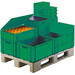 -Transport-Stapelkasten, Wände und Boden geschlossen, mit und ohne Grifflochung, grün Diese Stapelkästen eignen sich für den Einsatz auf Rollenbahnen.