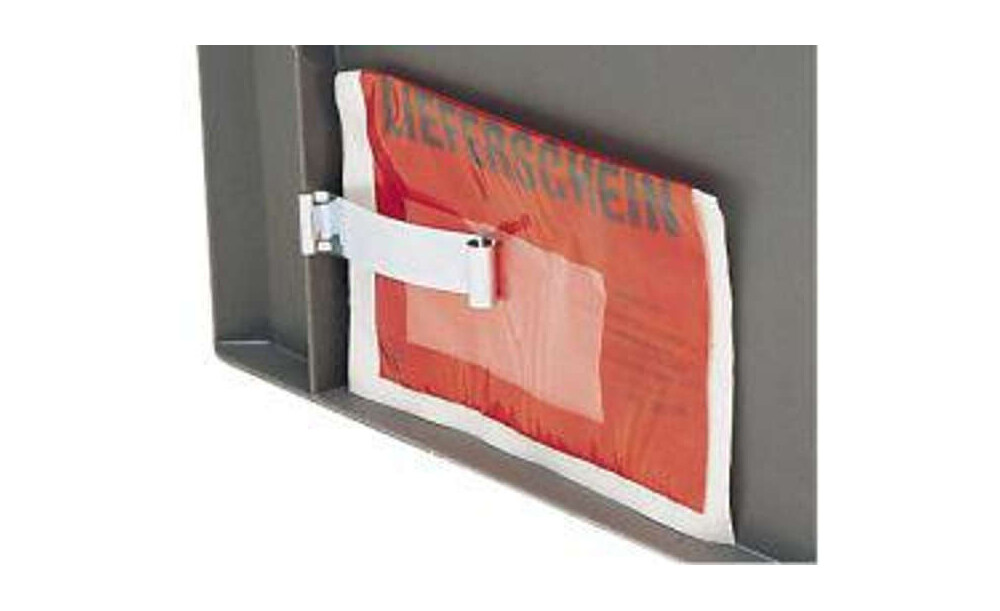 -Etikettenklammer für Transport-Stapelkästen (Zubehör) Die Etikettenklammer ist ansteckbar und aus Metall.