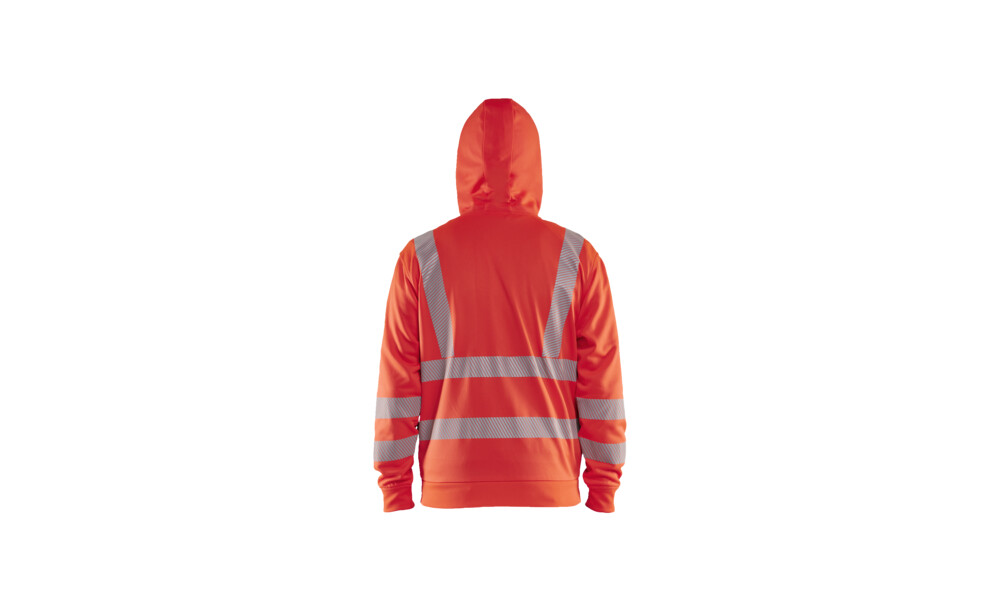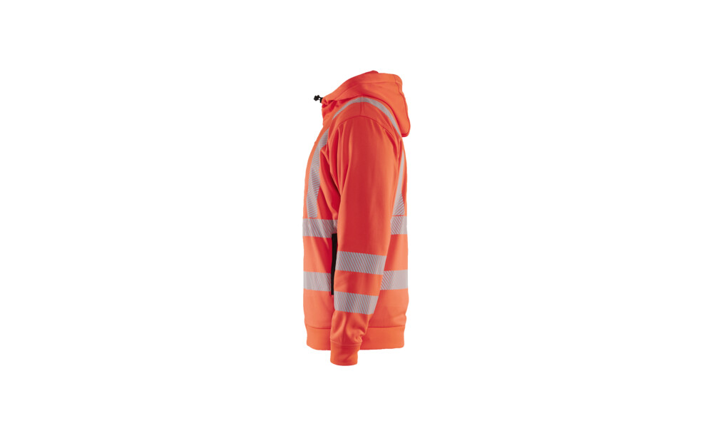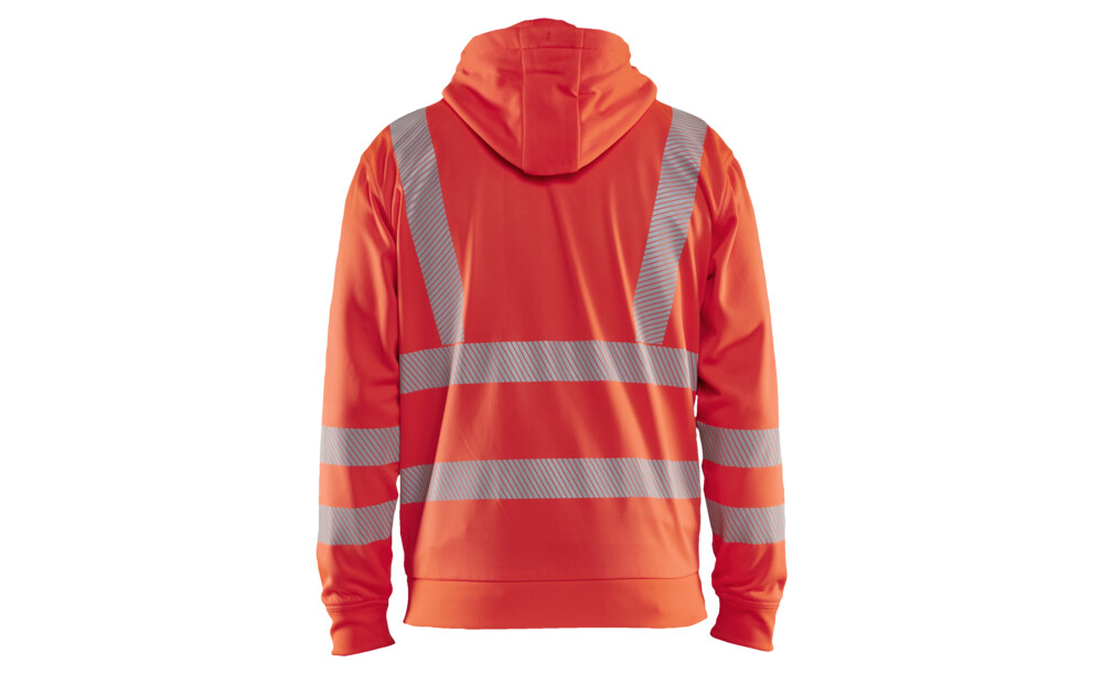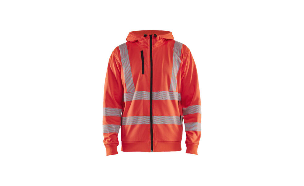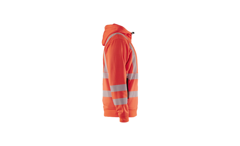 Ein Kapuzensweater in High Vis Klasse 3 mit unterbrochenen Reflexstreifen für zusätzliche Sichtbarkeit. Das Material des Sweaters ist ein weiches und angenehmes Fleece, das eine unschlagbare Kombination aus Sicherheit und Komfort bietet. Er hat eine Kapuze, einen durchgehenden Reißverschluss, eine Brusttasche und Rippstrickbündchen. Er kann industriell gewaschen werden. Zertifiziert nach EN ISO 20471 Klasse 3. Industriewäsche EN ISO 15797.
