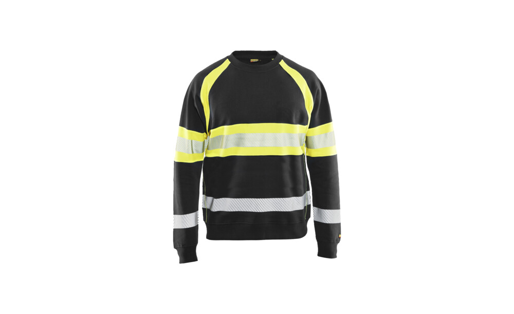 Weicher und komfortabler High Vis Sweater mit unterbrochenen Reflexstreifen für optimale Bewegungsfreiheit und Atmungsaktivität. Die Kontrastfarbe besteht aus 100 % Baumwolle und der Warnschutzbereich besteht aus 100 % Polyester. Rundhalskragen, Strickbund und Bündchen für besseren Komfort. Zertifiziert nach EN ISO 20471, Klasse 1.