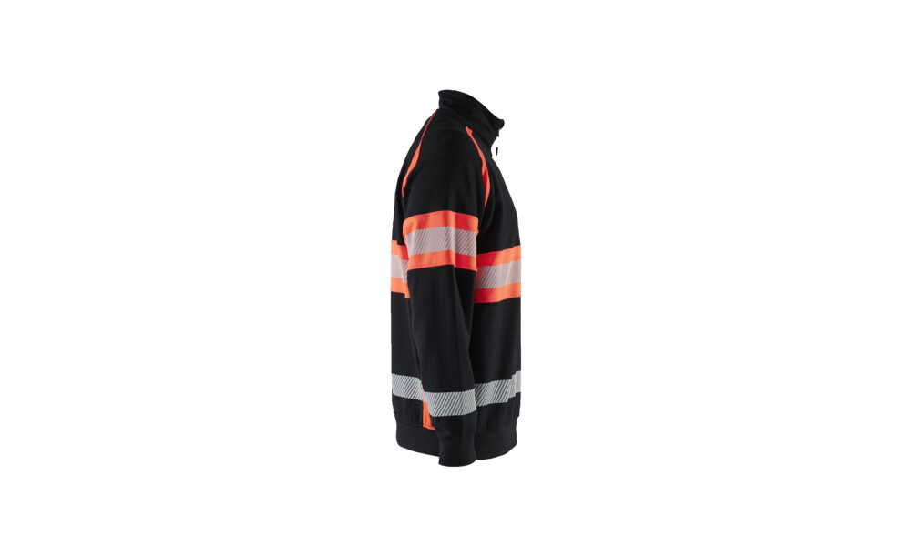 Ein weicher und bequemer High Vis Sweater mit unterbrochenen Reflexstreifen für besonders gute Stretch-Fähigkeit und Atmungsaktivität. Er hat einen hohen Kragen, einen Half Zip-Reißverschluss und Bündchen an der Unterseite und den Ärmelenden für höheren Komfort. Der dunkle Teil des Sweaters besteht aus 100 Prozent Baumwolle und der High Vis-Teil ist aus 100 Prozent Polyester gefertigt. Zertifiziert nach EN ISO 20471, Klasse 1.