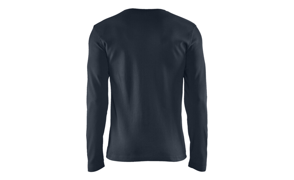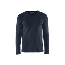Einfarbiges T-Shirt mit langen Ärmeln. Rippenstrick, Rundhalsausschnitt. Verstärkte Hals- und Schulternähte.
