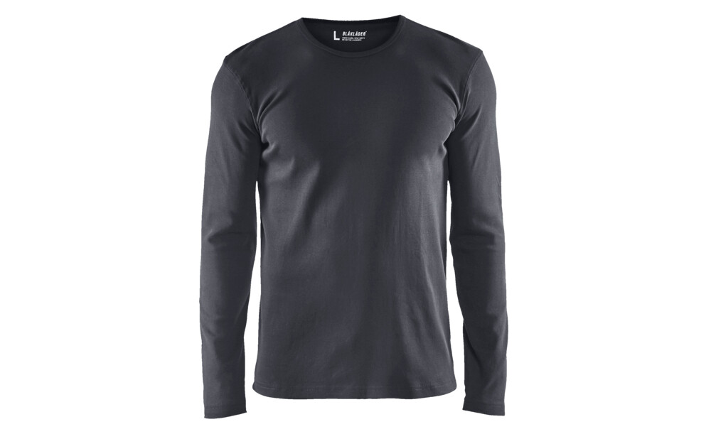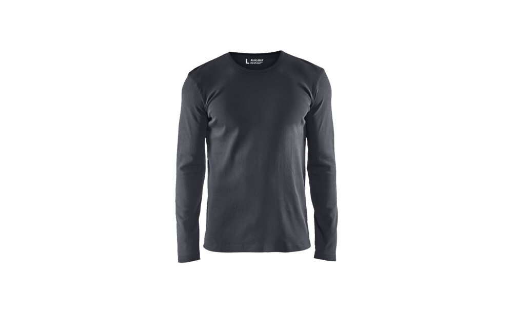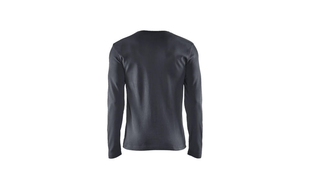 Einfarbiges T-Shirt mit langen Ärmeln. Rippenstrick, Rundhalsausschnitt. Verstärkte Hals- und Schulternähte.