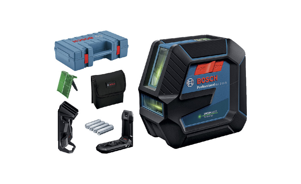 - Ausführungsehr robuste Bauweise mit gummiertem Gehäuse, horizontale und vertikale grüne Laserlinien