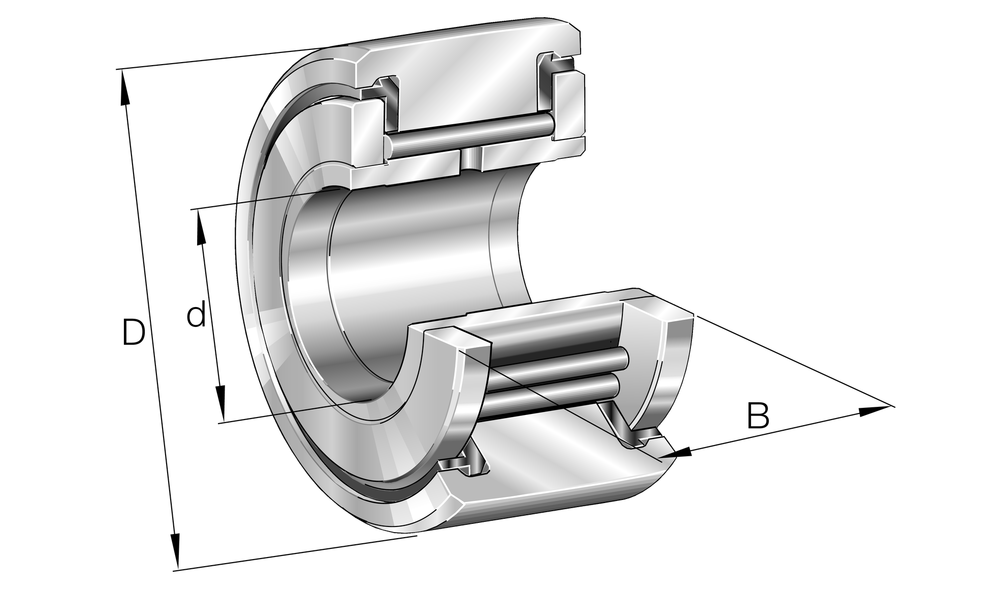 Stützrolle als Nadellager, vollnadelig, mit Innenring und Axialführung des Außenrings, beidseitig abgedichtet