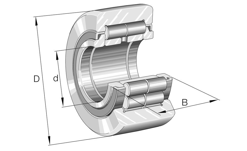 Stützrollen als Zylinderrollenlager, vollrollig, mit Innenring und Axialführung des Außenrings, beidseitig abgedichtet