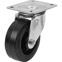 Gehäuse Stahlblech, Radkörper aus PA 6 mit aufvulkanisiertem Marken-Elastik-Vollgummireifen.