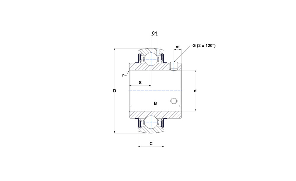 Sphärischer Außenring, Befestigung durch Gewindestifte, Dichtung mit Schleuderscheibe