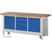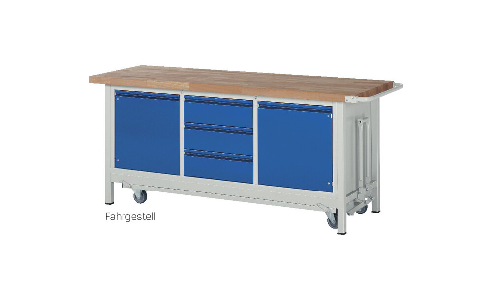 Mobile Werkbank PRETEC, Tiefe 700 mm, Gestell RAL 7035 lichtgrau / Einbauten RAL 5010 enzianblau
