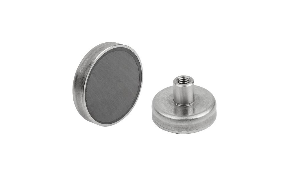MAGNET FLACHGREIFER M05, D=50 +0,2/-0,1, H1=18,5, HARTFERRIT, RUND, KOMP:EDELSTAHL