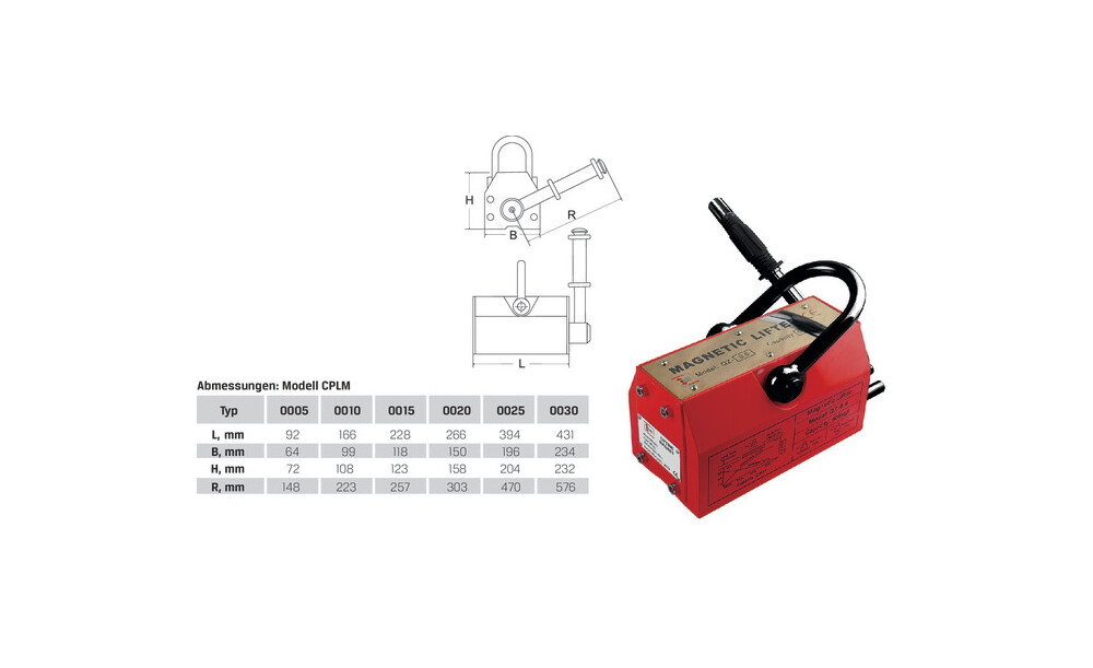- ideal zum einfachen und schnellen Transport schwerer Werkstücke aus ferromagnetischem Material