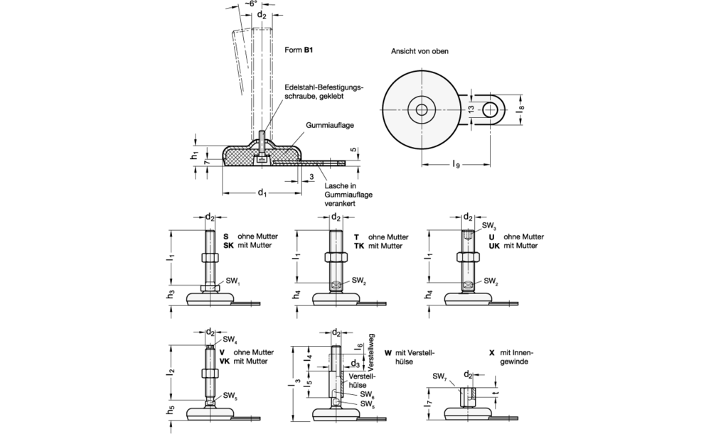 - Form (Fußteller): B1 - matt gestrahlt, Gummi eingelegt, schwarz