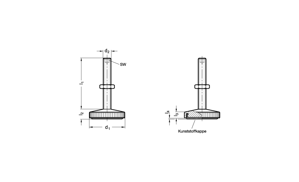 Stellfüße GN 339 werden bei Geräten eingesetzt, bei denen für die Justierung zwischen Fuß und Schraube keine Gelenkverbindung erforderlich ist.