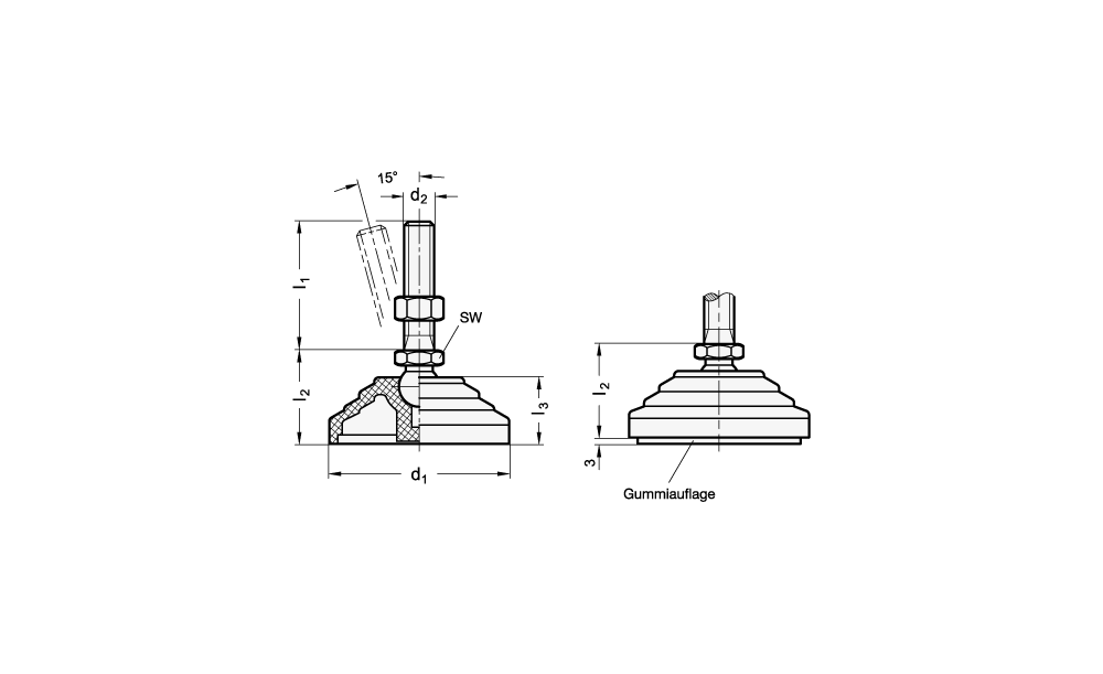 GANTER ELESA-Gelenkfuß ohne Mutter, ohne Gummiauflage