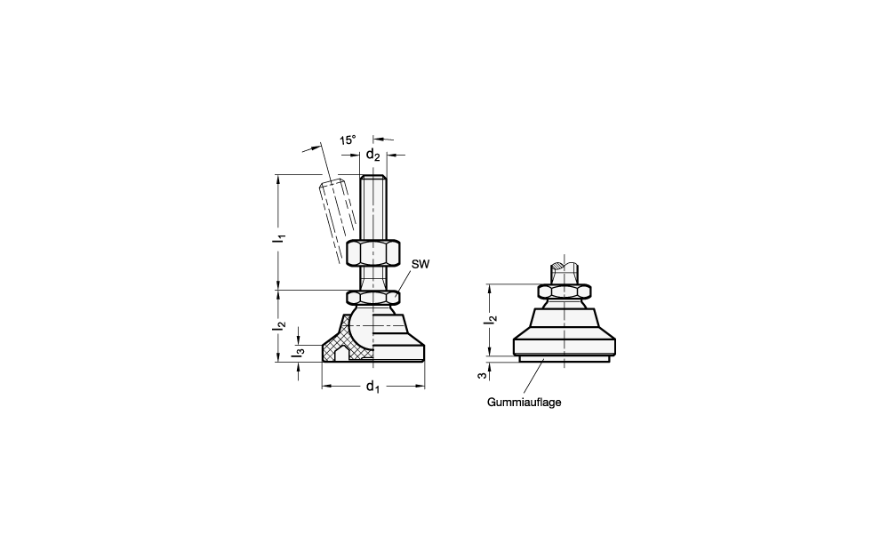 Gelenkfüße, Fuß Kunststoff, Verstellspindel Stahl